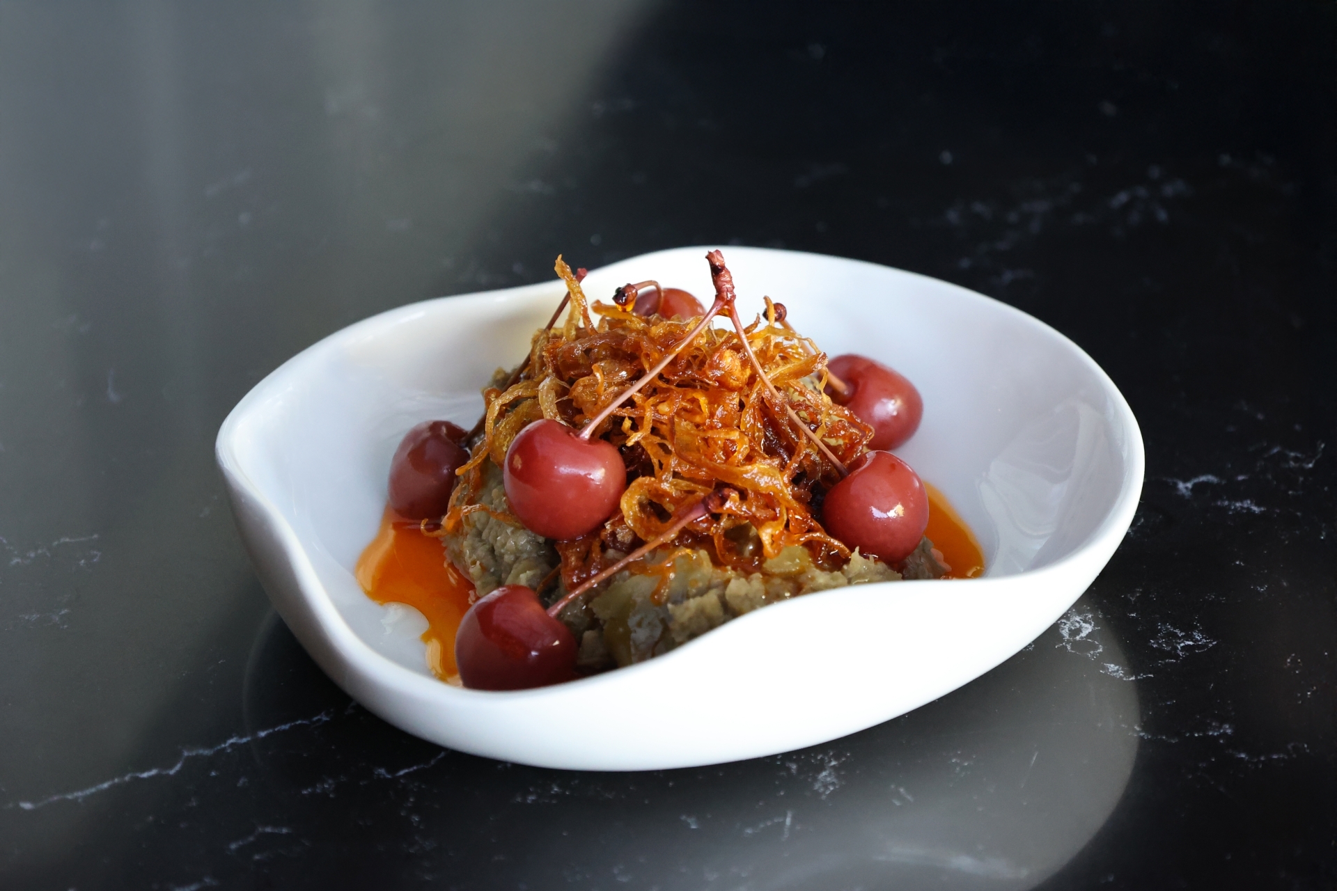 Kızarmış Soğanlı, Kiraz Turşulu Mercimek Fava; mercimek favanın sakin, kremamsı yapısı kızarmış soğanın aromasıyla birleşir. Tercihe göre bakla veya yeşil mercimek ile hazırlanabilen bu tabak, 7 Mehmet’in kendine özgü sunum anlayışıyla sade malzemelerin uyumunu vurgular.
